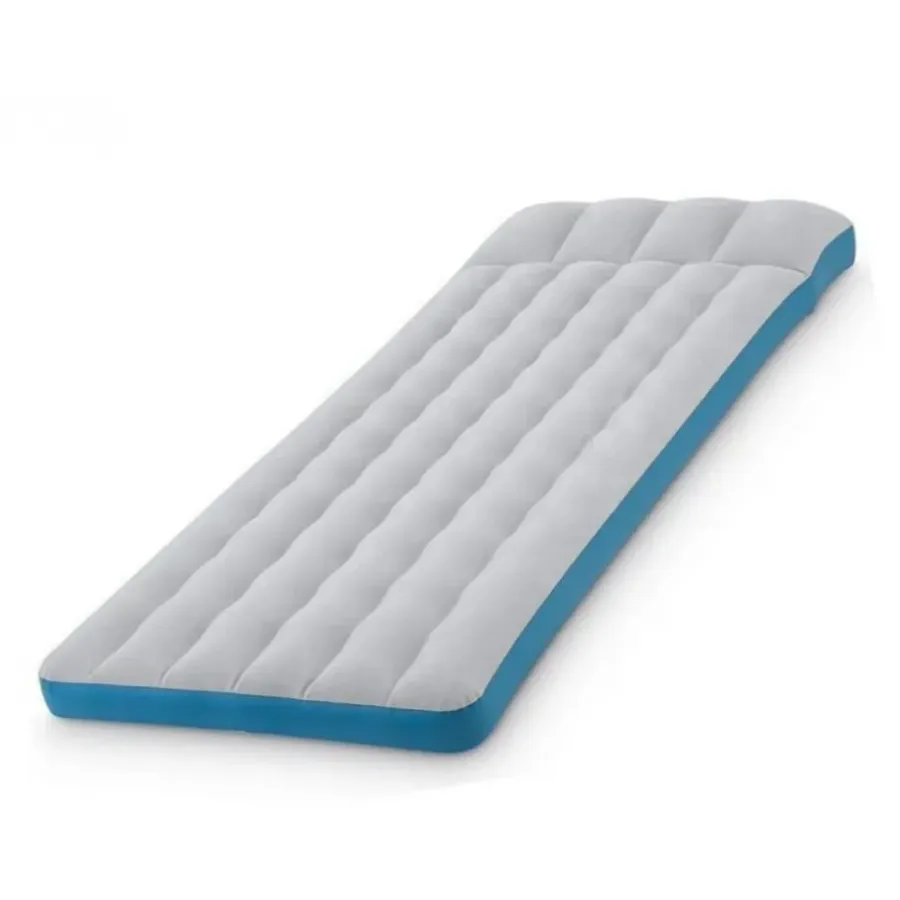 Поверхня матраца виготовлена з тканинного матеріалу, який приємний на дотик і захищає від ковзання спального мішка або простирадла. Спеціальна структура внутрішніх каналів рівномірно розподіляє повітря, що запобігає просіданню й гарантує підтримку спини протягом всієї ночі. Надійний клапан забезпечує герметичність і швидку підготовку матрацу до використання.