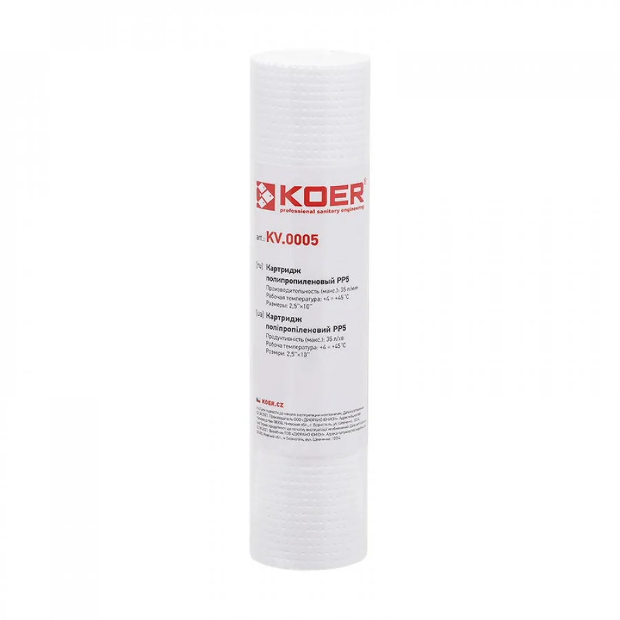 Картридж поліпропіленовий KOER KV-01-2510-05 PP5 2,5"х10" (KR5241) – надійний фільтр для вашої води