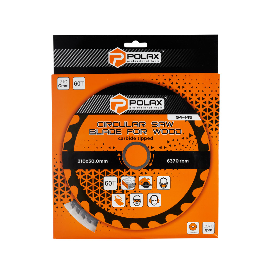 Пильный диск Polax по дереву с твердосплавными напайками 210x30.0/25.4, 60Т (54-145) — оптимальный выбор для профессиональной и бытовой работы