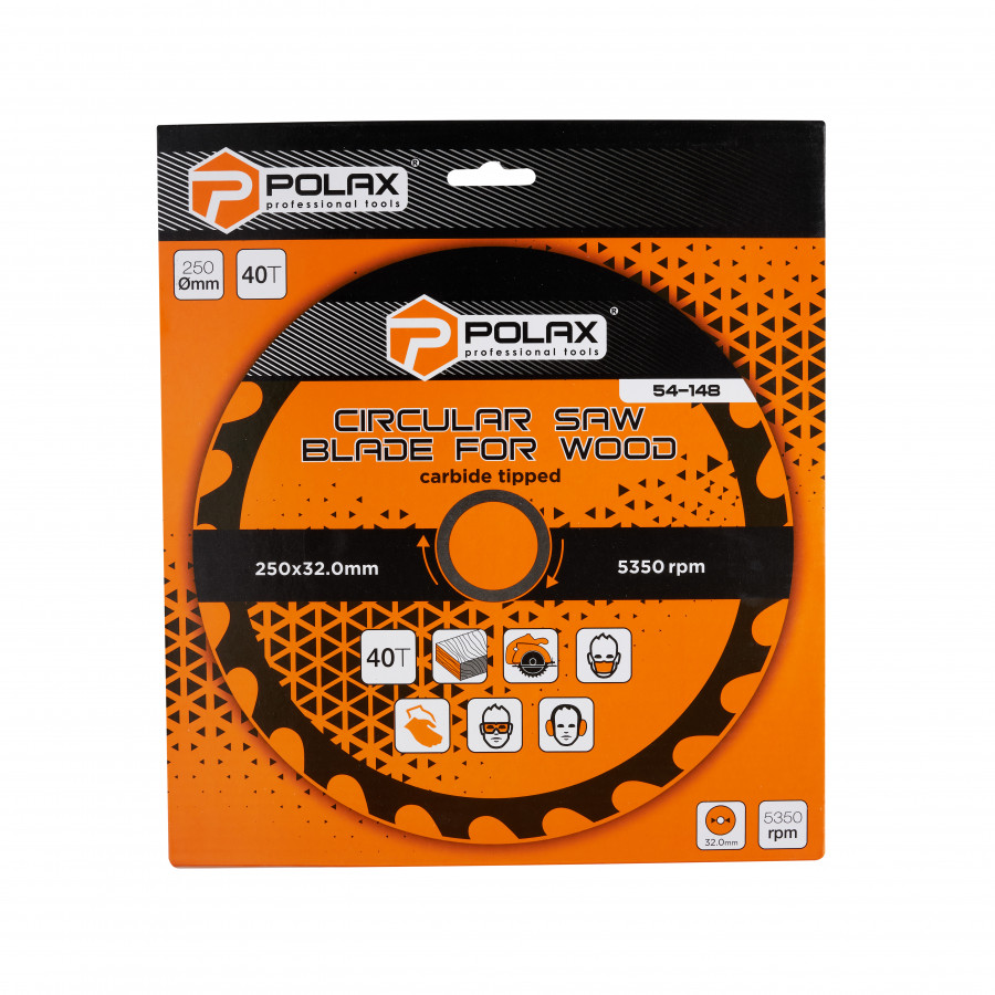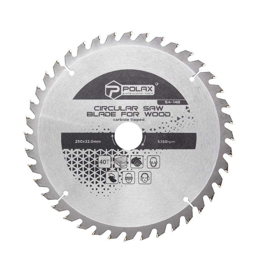 Пильный диск Polax по дереву с твердосплавными напайками 250x32.0/30.0, 40Т (54-148) — надежный инструмент для точного распила