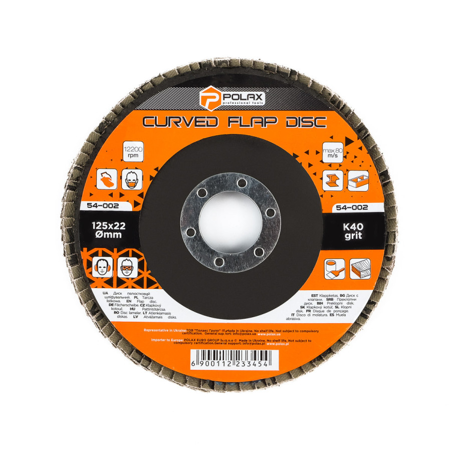 Круг (диск) Polax шлифовальный лепестковый для УШМ (болгарки) 125*22мм, зерно K40 (54-002)