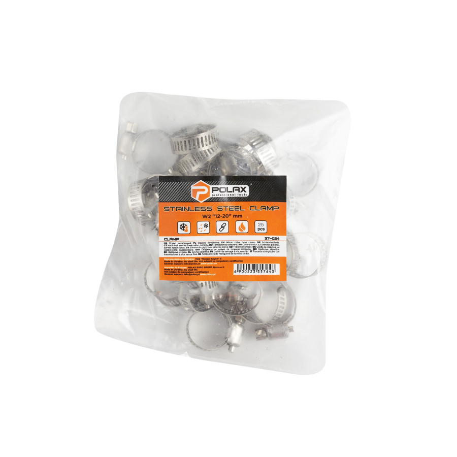 Благодаря универсальному диапазону 12-20 мм, хомут Polax подходит для большинства стандартных соединений. Его просто установить и снять, используя стандартный инструмент.