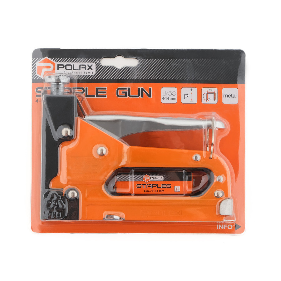 Эта модель подходит для использования с различными скобами размером от 4 мм до 14 мм, что позволяет эффективно выполнять самые разнообразные задачи. Прочная металлическая конструкция обеспечивает надежность и долговечность инструмента. Благодаря эргономичной форме рукоятки, степлер Polax удобно держать в руке, что снижает усталость во время длительной работы.