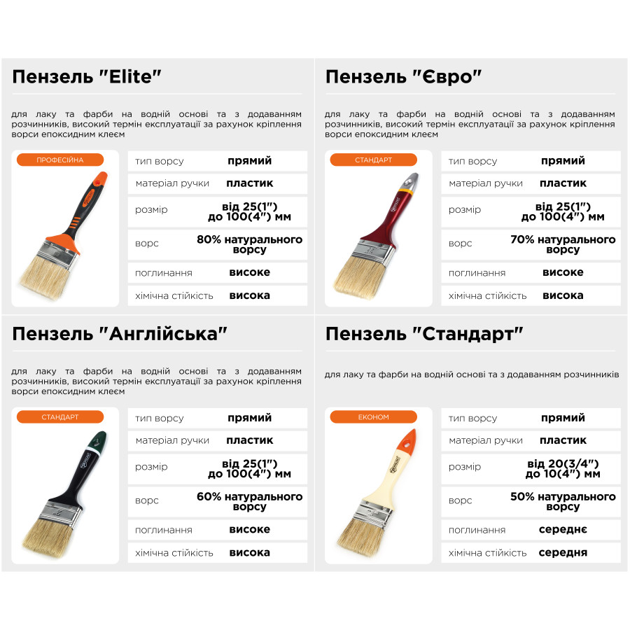 - Ширина кисти: 2,5 дюйма