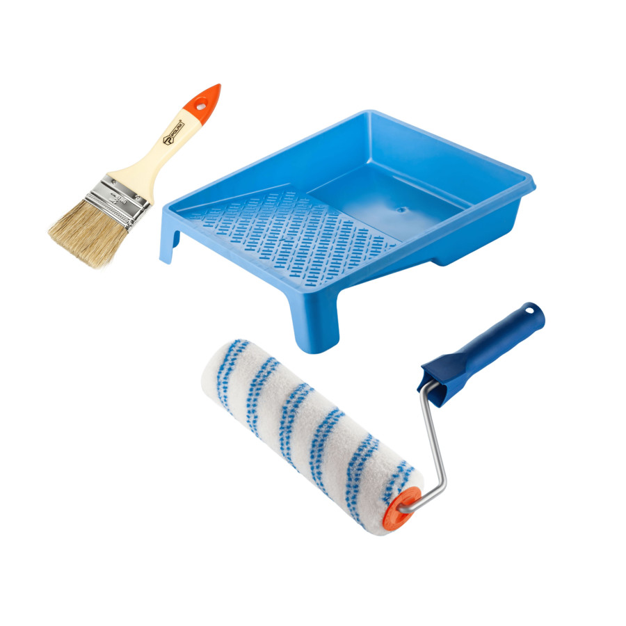 Набор для малярных работ Polax: Валик "Нейлон" 250х48 мм с ручкой, ванночка и кисточка "Стандарт" (770-271)