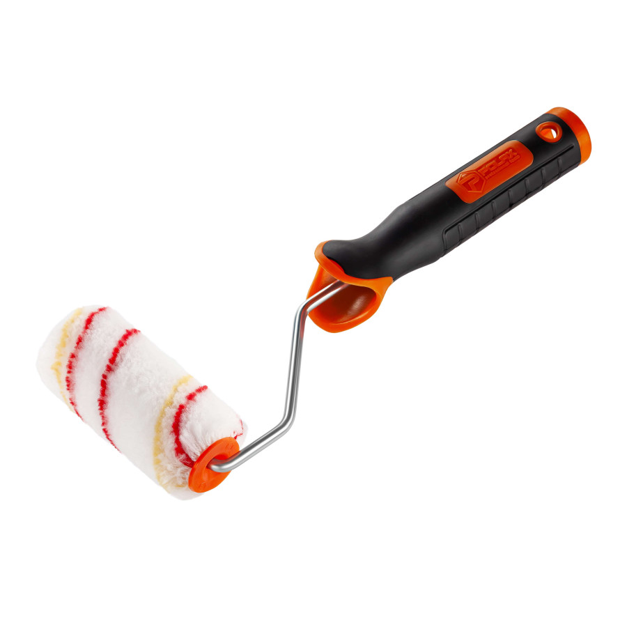 Ручка изготовлена из прочного пластика, что обеспечивает надежный хват и защиту от скольжения руки во время работы. Валик легко устанавливается и фиксируется на ручке, что значительно экономит время при подготовке к работе.