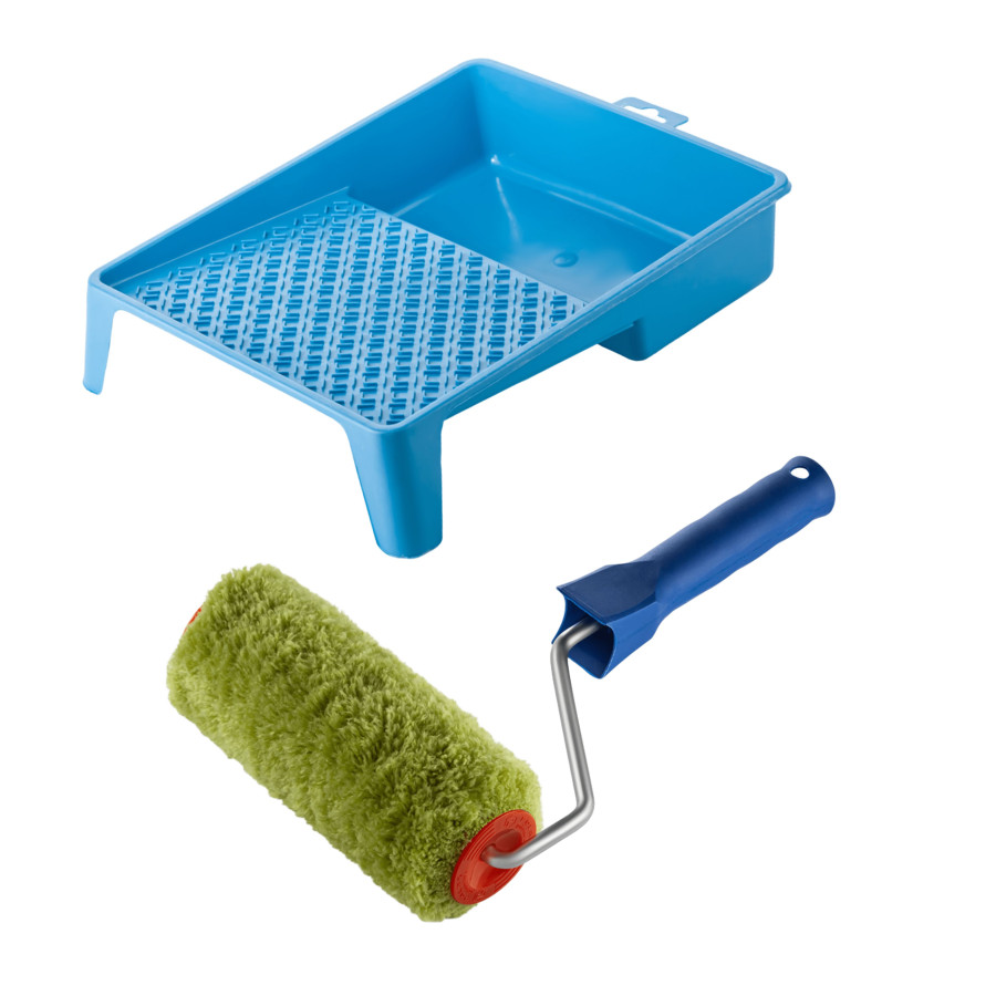 - Ванночка в комплекте — позволяет удобно набирать и удалять излишки краски с валика.