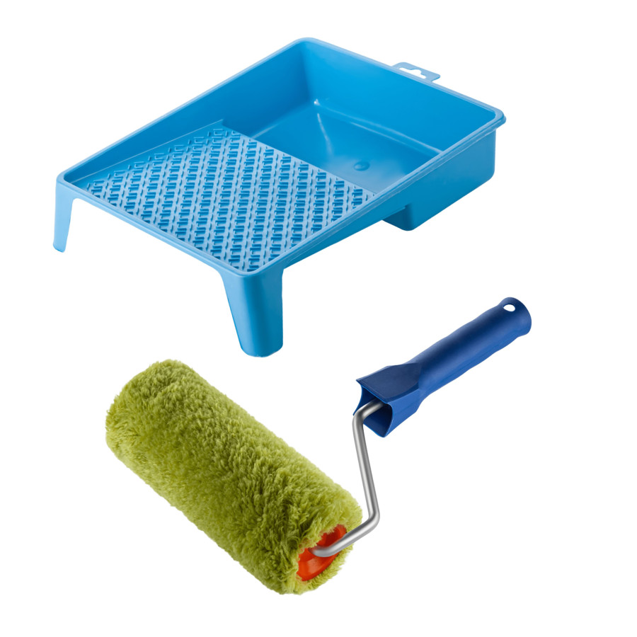 - Ванночка в комплекте – позволяет равномерно набирать краску на валик и сохранять рабочее место чистым.