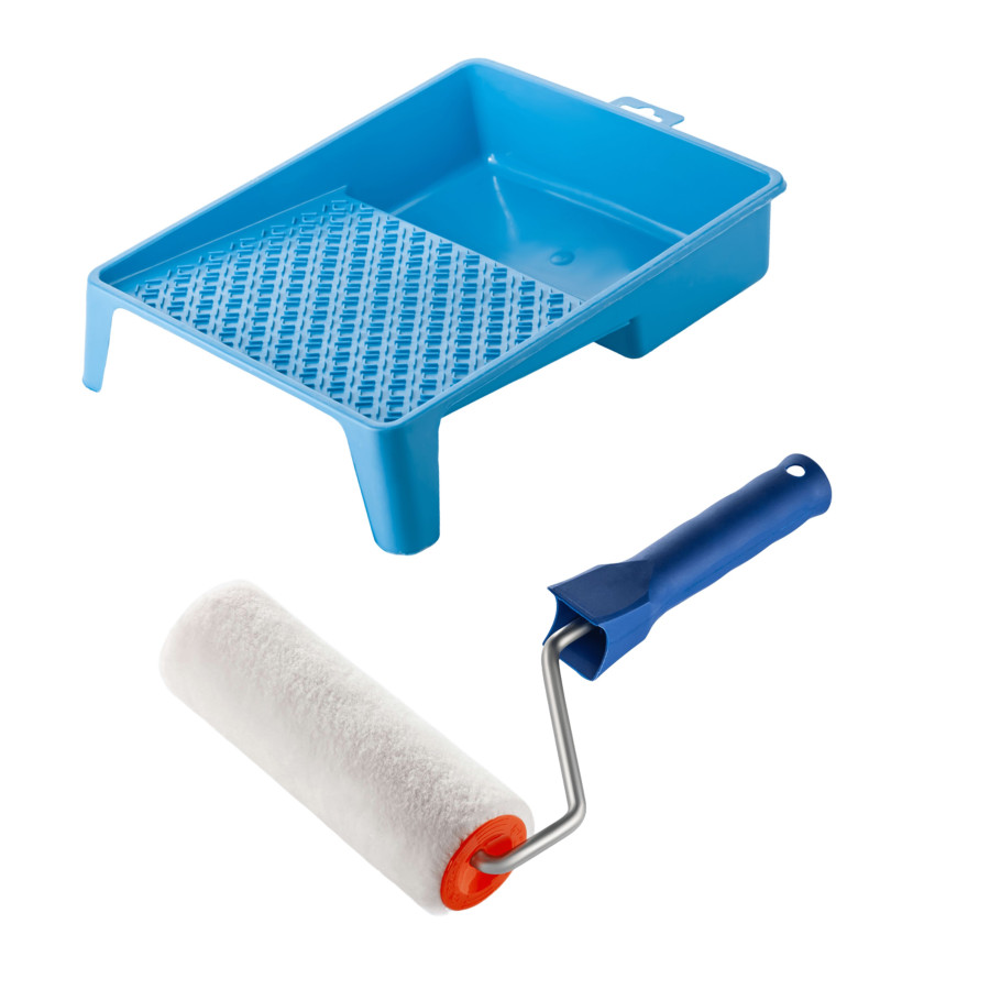 - Комплексный подход: В комплекте вы получаете валик, ручку и специальную ванночку для краски, что позволяет сразу приступить к работе без необходимости покупать дополнительные аксессуары.