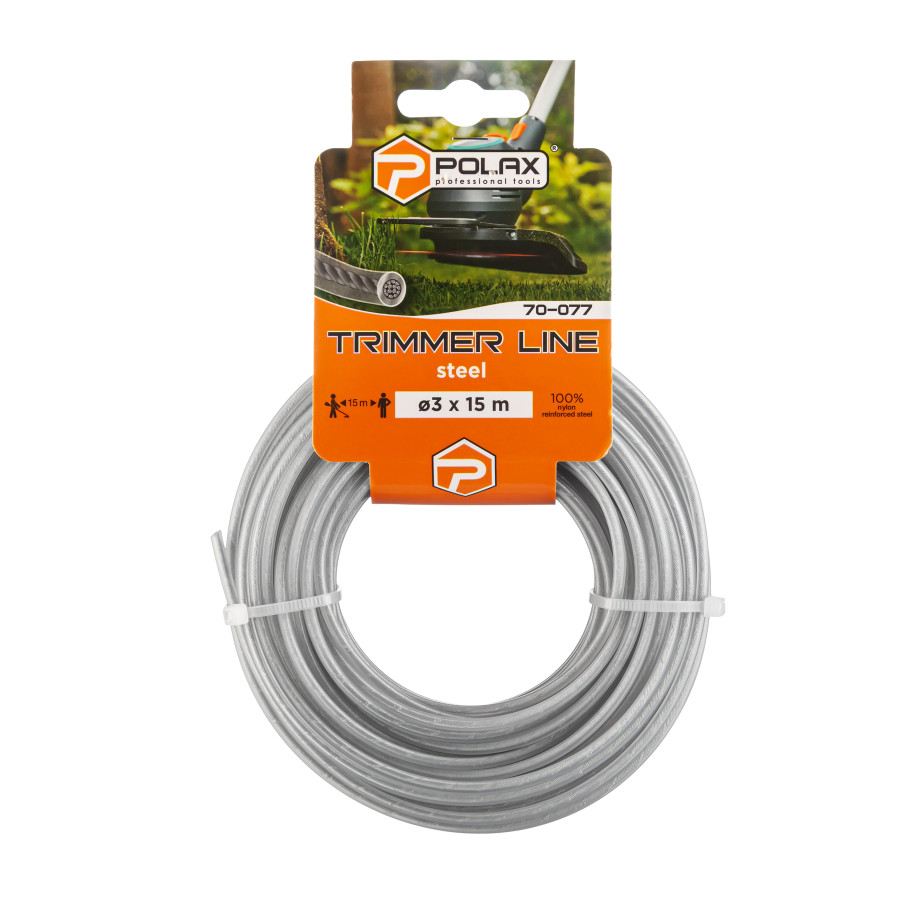 Леска для триммера Polax "Круг со стальным кордом" 3 мм, 15 м – надежность для идеального ухода за газоном