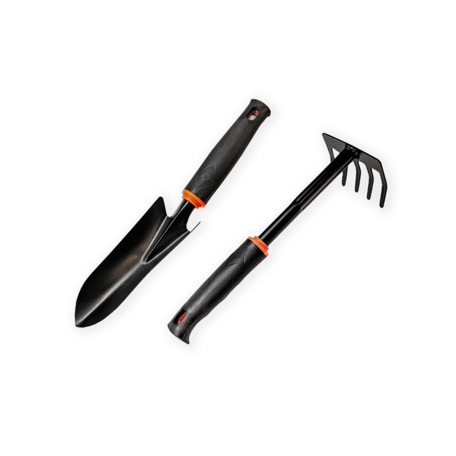Набор садовых инструментов Polax включает два наиболее необходимые инструмента для работы с грунтом – лопатку и мини-грабли. Благодаря компактности и эргономичной форме они подходят как для опытных садоводов, так и для новичков.