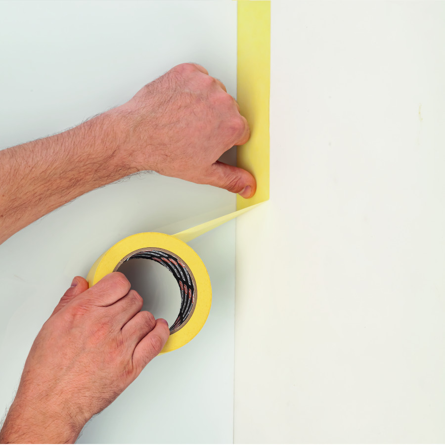 - Фиксации полиэтиленовой пленки или бумаги для защиты от пыли и загрязнений.