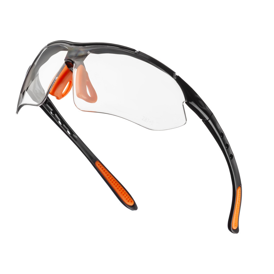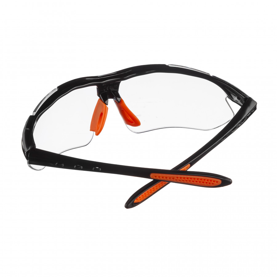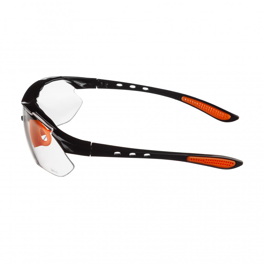 Модель Polax (53-054) имеет оптимально продуманные детали. Благодаря противоскользящим дужкам очки надежно держатся даже при интенсивных движениях или во время наклона головы, что снижает риск травмирования из-за случайного смещения средств защиты. Использование поликарбоната позволяет достичь максимальной прочности без увеличения веса очков. Прозрачные линзы гарантируют чистый, безцветный обзор и не вызывают искажения зрения.