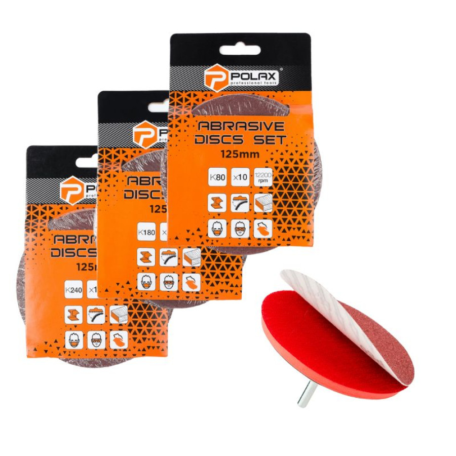 Наждачні круги на липучці Polax (К80, К180, К240) та диск Polax (335-60) – професійний вибір для якісної обробки поверхонь