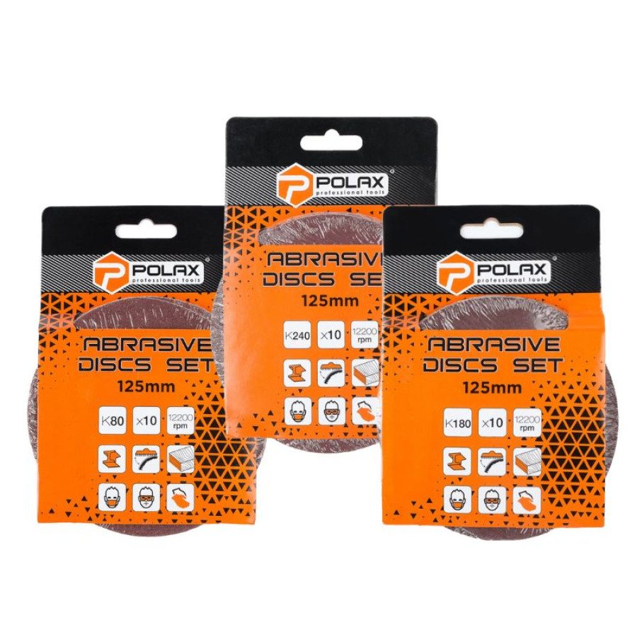 Набір наждачних кругів Polax стане незамінним помічником у веломайстерні чи домашньому гаражі. Завдяки трьом різним ступеням зернистості ви зможете виконати як грубе шліфування, так і фінішну обробку. Всі круги мають надійне кріплення на липучці, що дозволяє швидко змінювати абразив під час роботи й економити час.