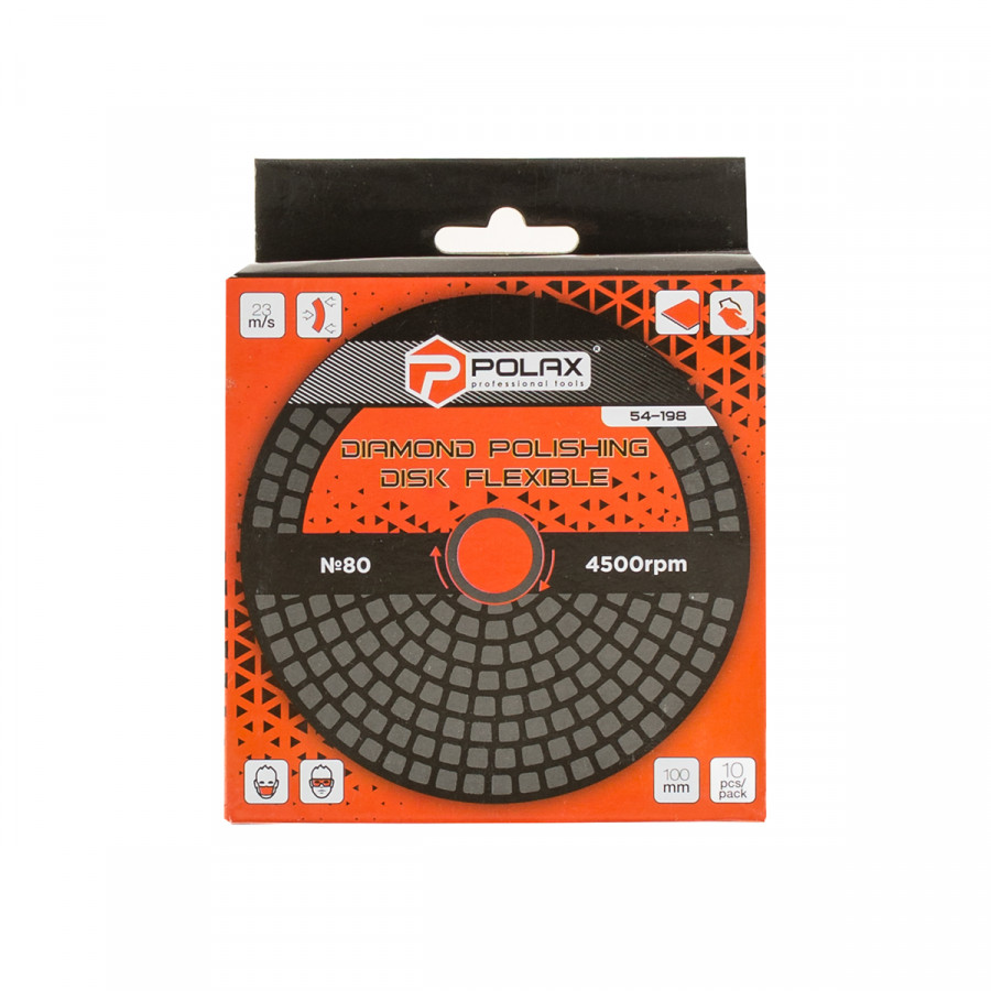 Диск алмазний Polax шліфувальний гнучкий на липучці "Черепашка" 100 мм, P80 (54-198) – надійний вибір для професійної та аматорської обробки поверхонь