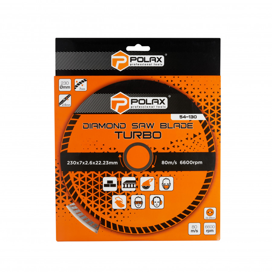 Диск алмазний турбо Polax 230x7x3.2x22.23, 25% (54-130) — надійний вибір для професійних робіт