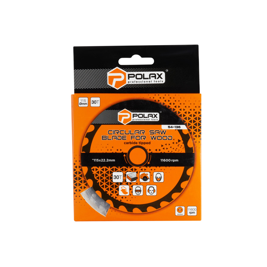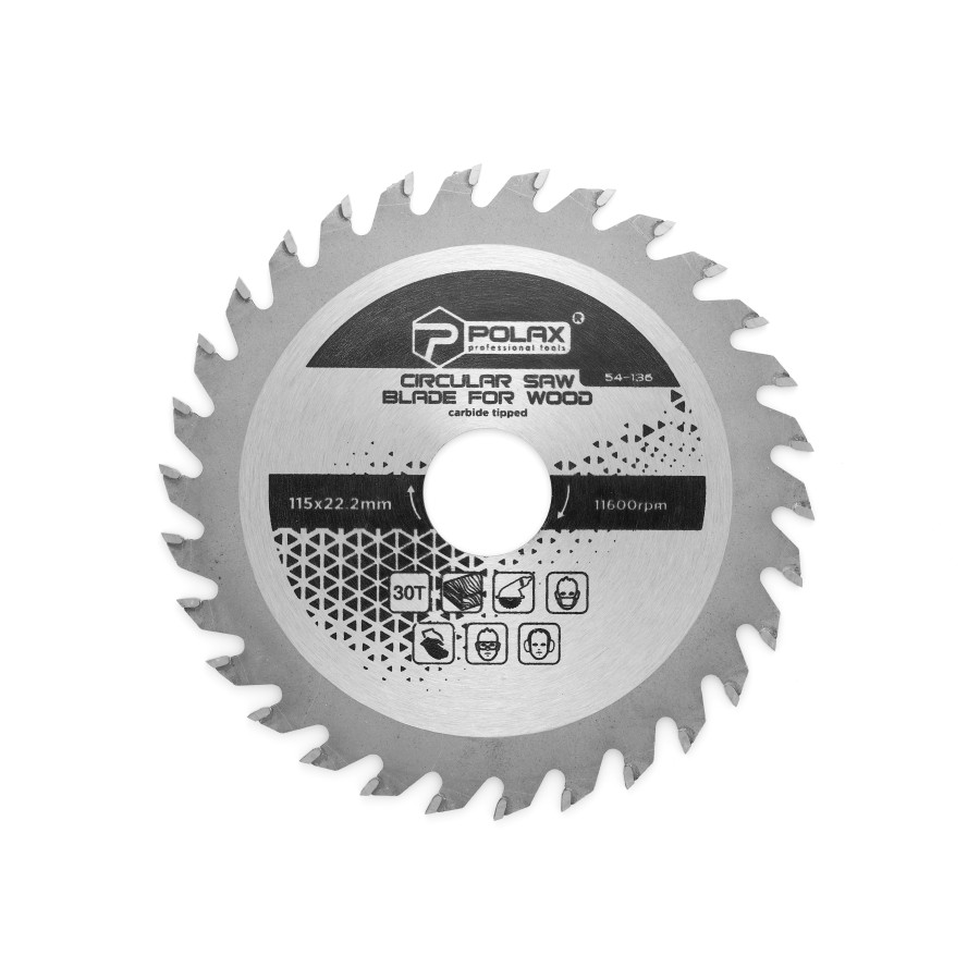 Диск пильний Polax по дереву з твердосплавними напайками 115x22.2/20, 30Т (54-136)