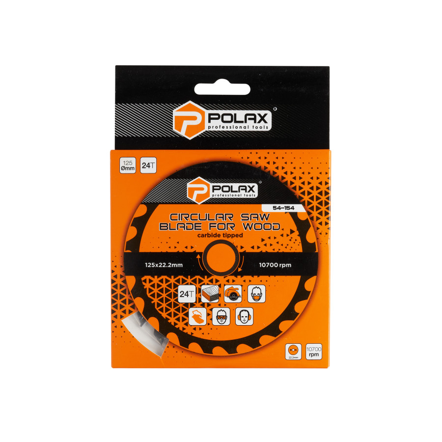 Диск пильний Polax по дереву з твердосплавними напайками 125x22.2/20, 24Т (54-154) – надійний вибір для якісного розпилу