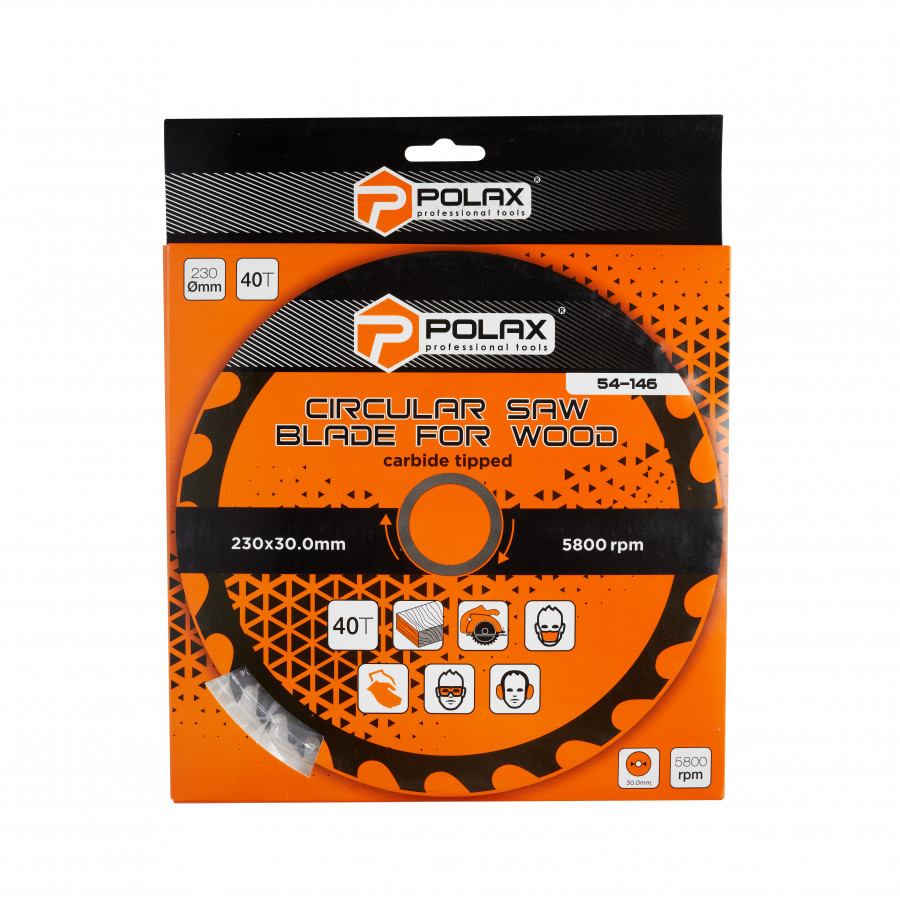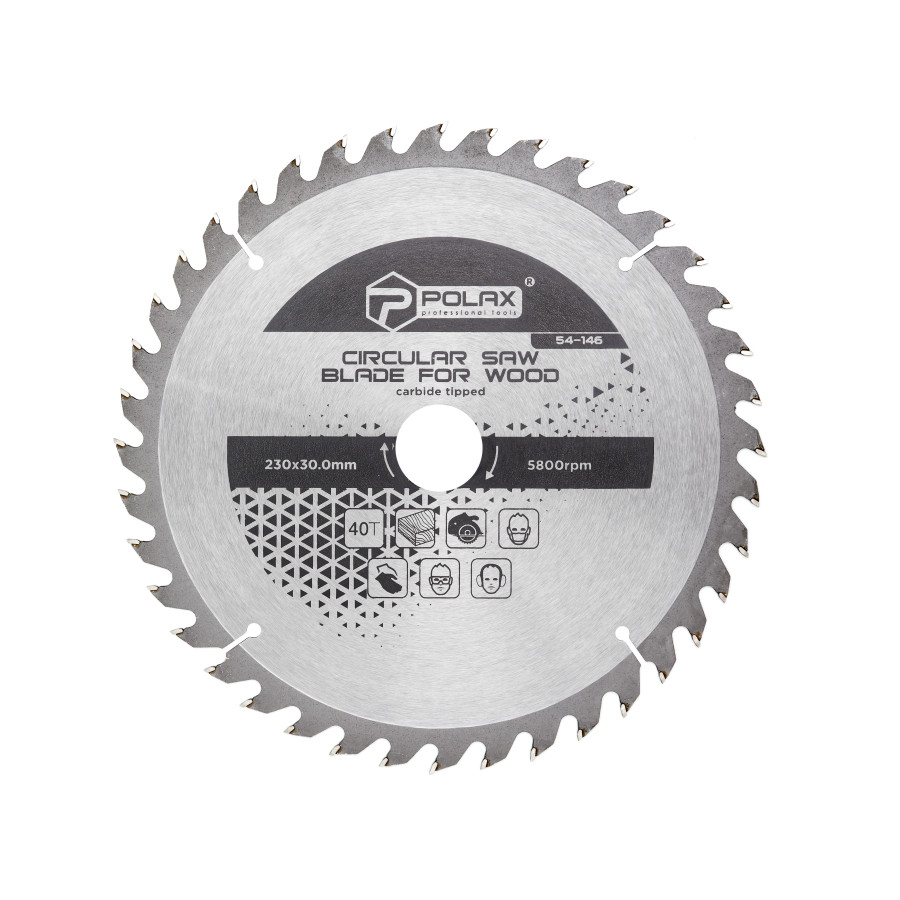 Диск пильний Polax по дереву з твердосплавними напайками 230x30.0/25.4, 40Т (54-146) – вибір професіоналів та майстрів