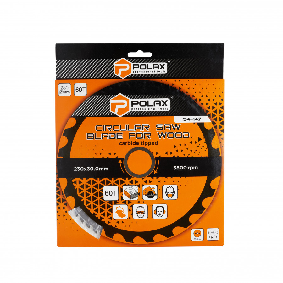 Пилковий диск Polax по дереву з твердосплавними напайками 230x30.0/25.4, 60Т (54-147) – надійний вибір для професіоналів та аматорів