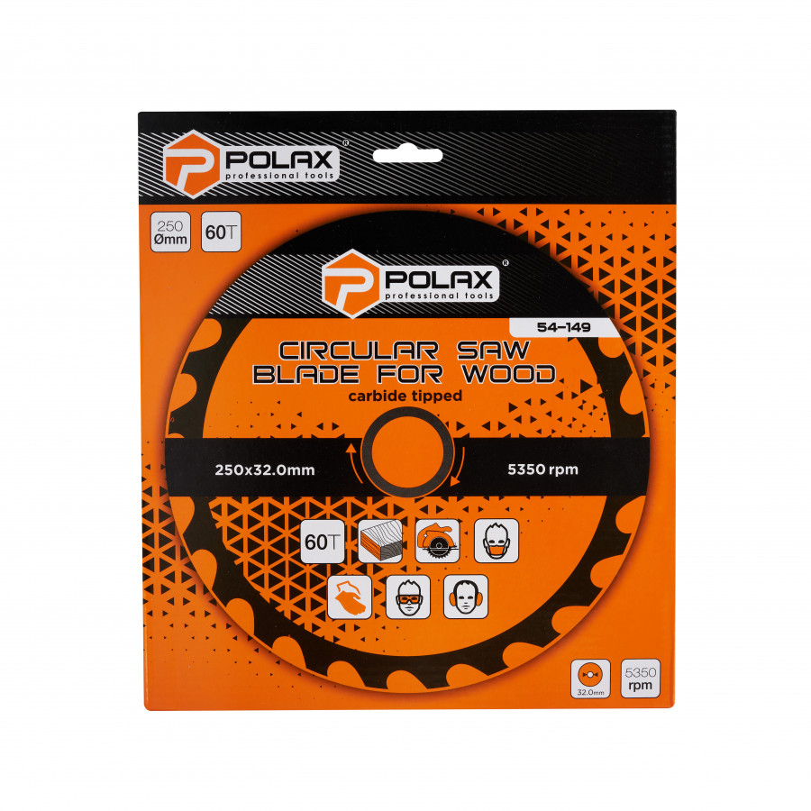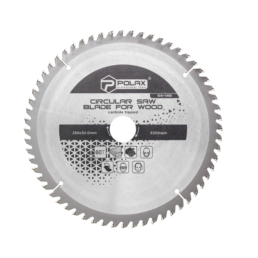 Диск пильний Polax по дереву з твердосплавними напайками 250x32.0/30.0, 60Т (54-149) – надійний інструмент для точного розпилу