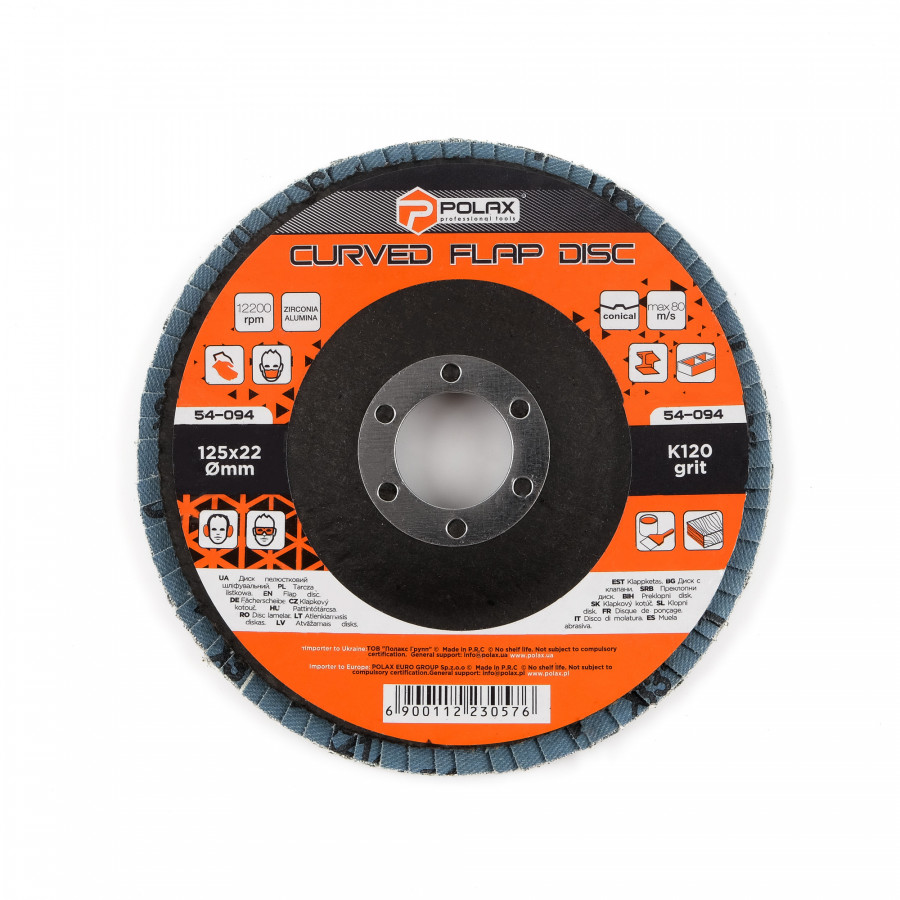 Диск шліфувальний пелюстковий 125*22, К120 Polax оксид цирконію (54-094): Надійний вибір для професіоналів та аматорів