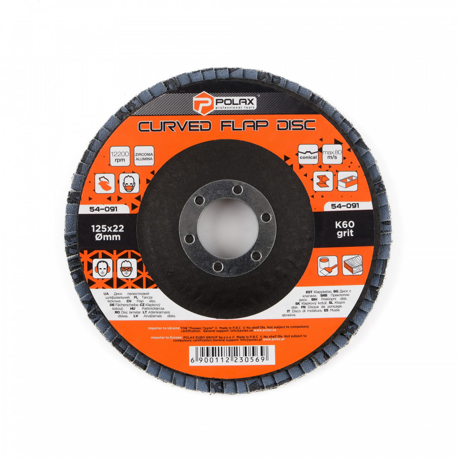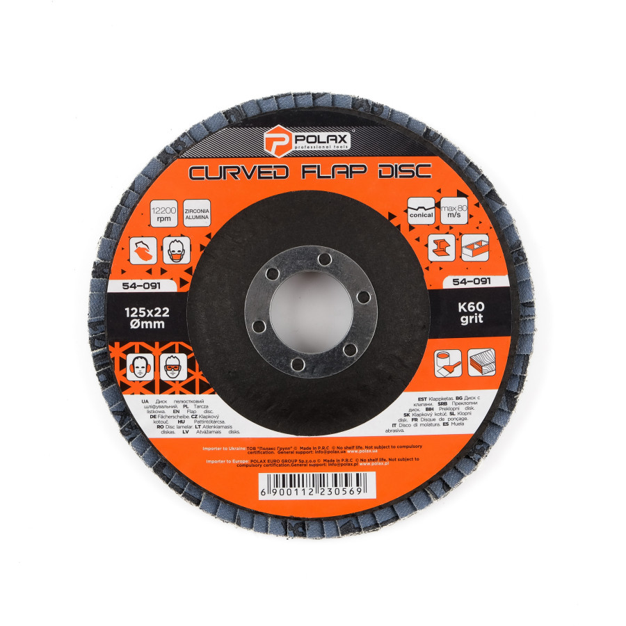 Диск шліфувальний пелюстковий 125*22, К60 Polax оксид цирконію (54-091) – надійний вибір для професійного використання
