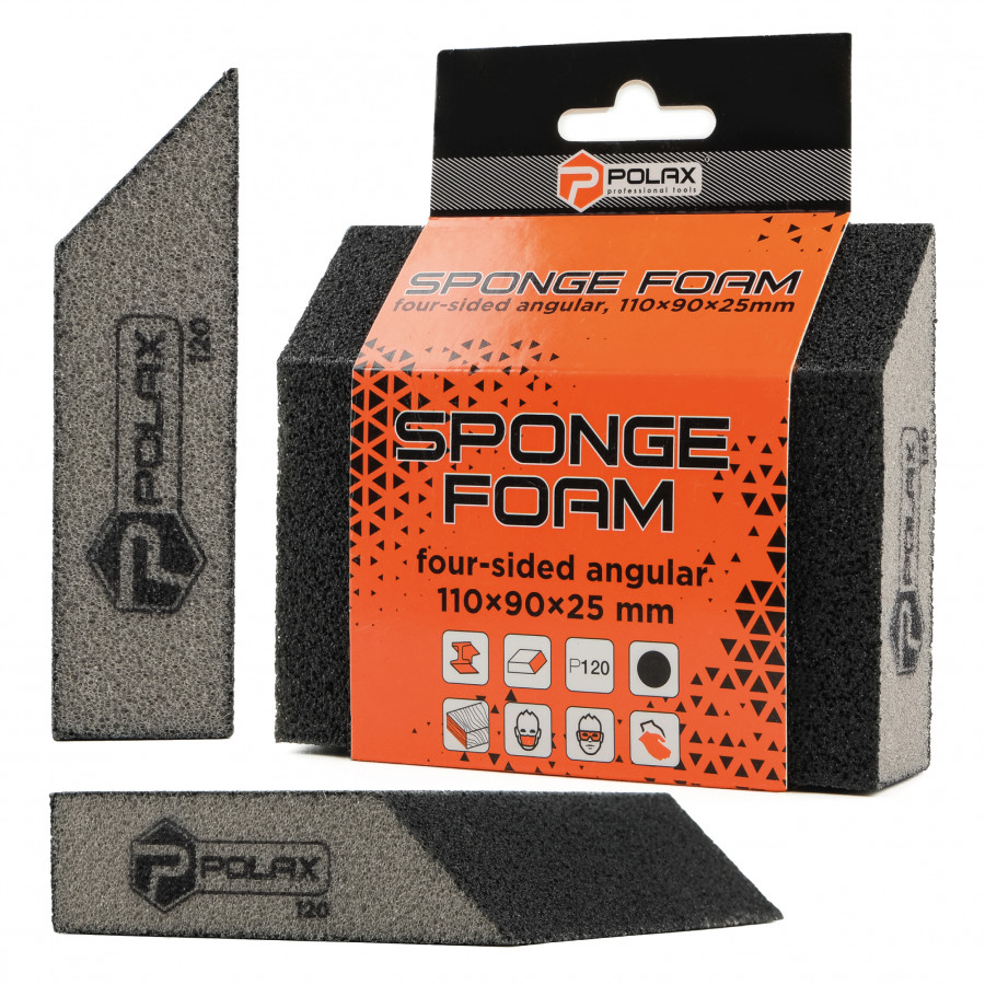 Теги: Губка шліфувальна P120 Polax кутова 110х90х25 мм (54-185), , 54-185, Polax, Абразивные материалы, Губки шлифовальные