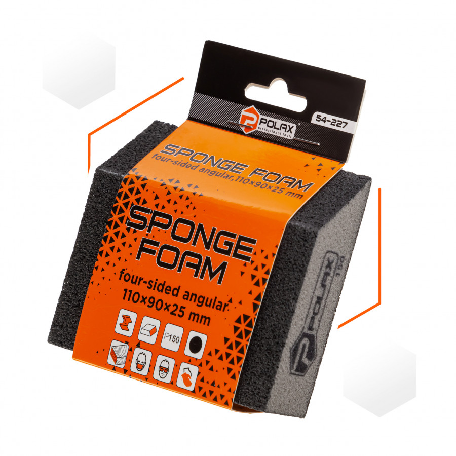 Теги: Губка шліфувальна P150 Polax кутова 110х90х25 мм (54-227), , 54-227, Polax, Абразивные материалы, Губки шлифовальные