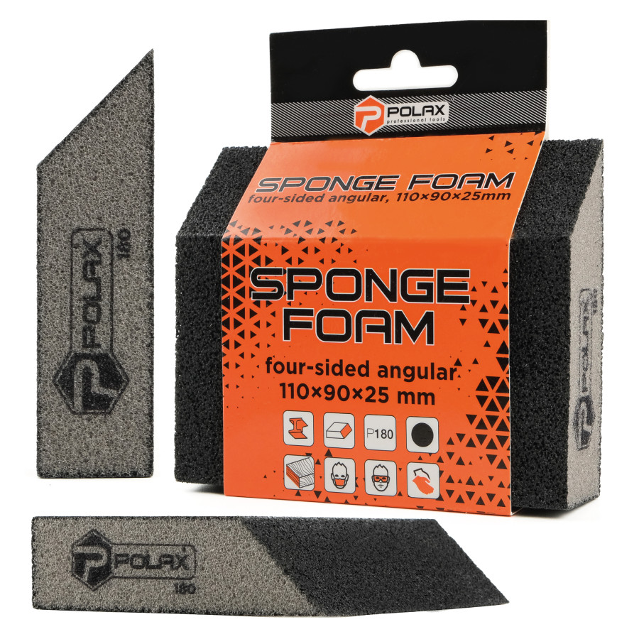 Теги: Губка шліфувальна P180 Polax кутова 110х90х25 мм (54-186), , 54-186, Polax, Абразивные материалы, Губки шлифовальные