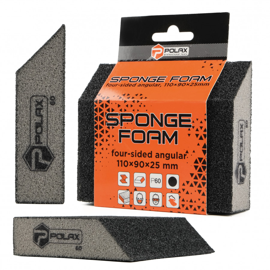 Губка шліфувальна P60 Polax кутова 110х90х25 мм (54-183)