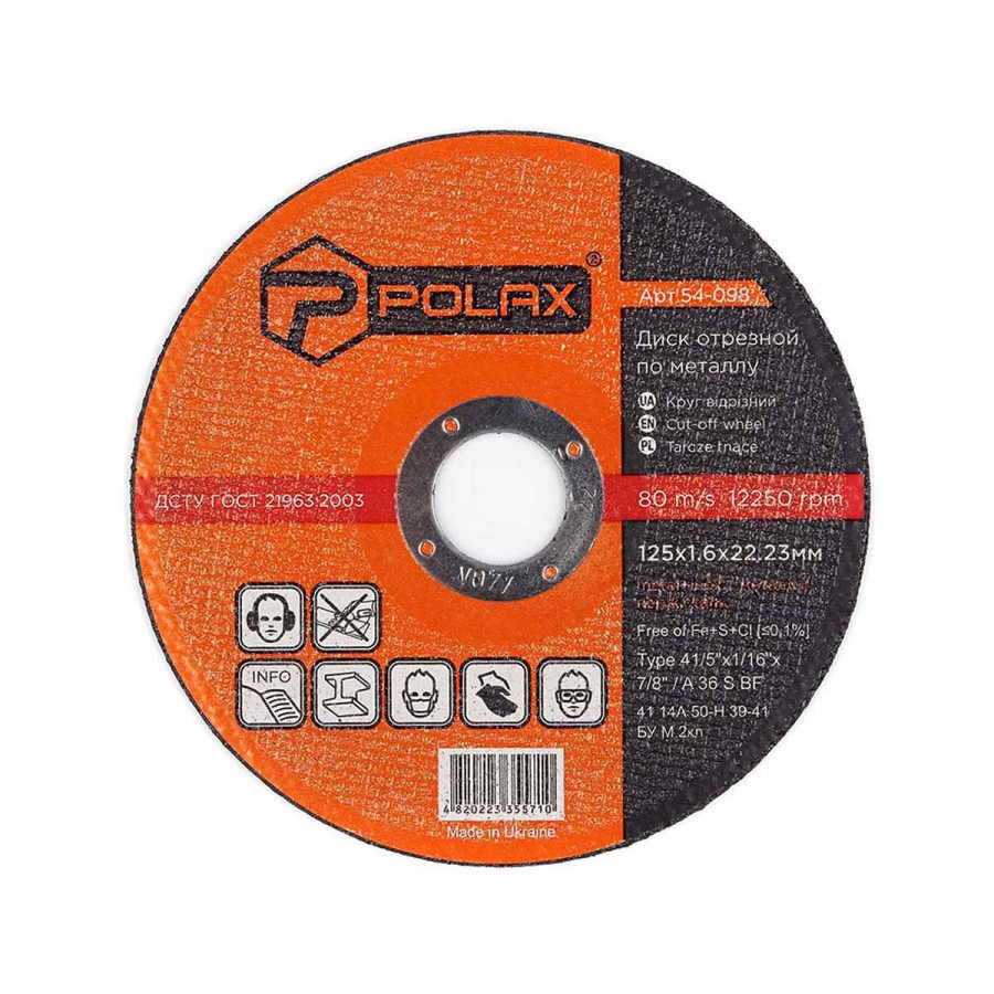 Диск Polax абразивний відрізний по металу 41 14А 125х1,6х22,23 (54-098) – надійний вибір для вашої майстерні
