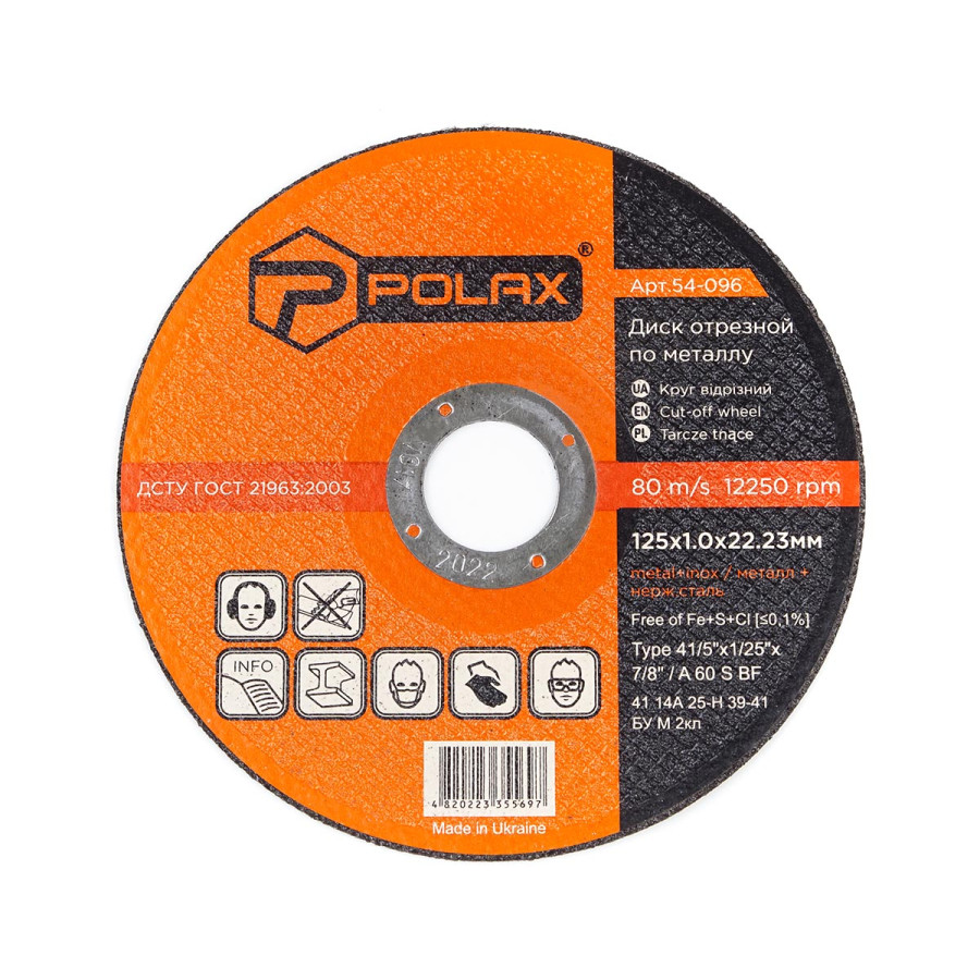 Диск Polax абразивний відрізний по металу 41 14А 125х1х22,23 (54-096): надійний вибір для роботи з металом