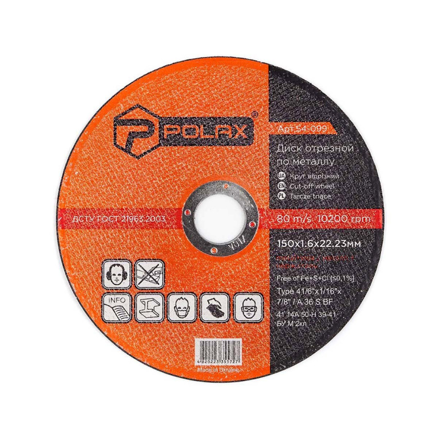 Диск Polax абразивний відрізний по металу 41 14А 150х1,6х22,23 (54-099): надійний вибір для професіоналів