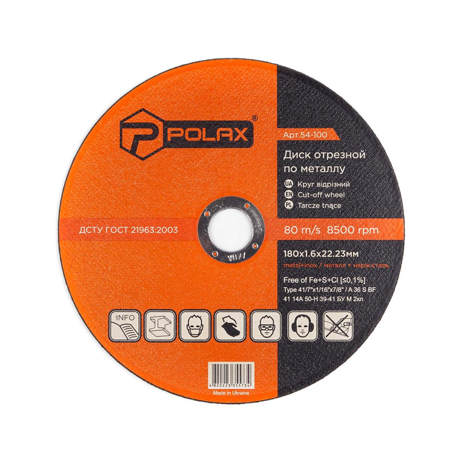 Диск Polax абразивний відрізний по металу Polax 41 14А 180 х 1.6 х 22.23 (54-100) – надійний інструмент для професіоналів