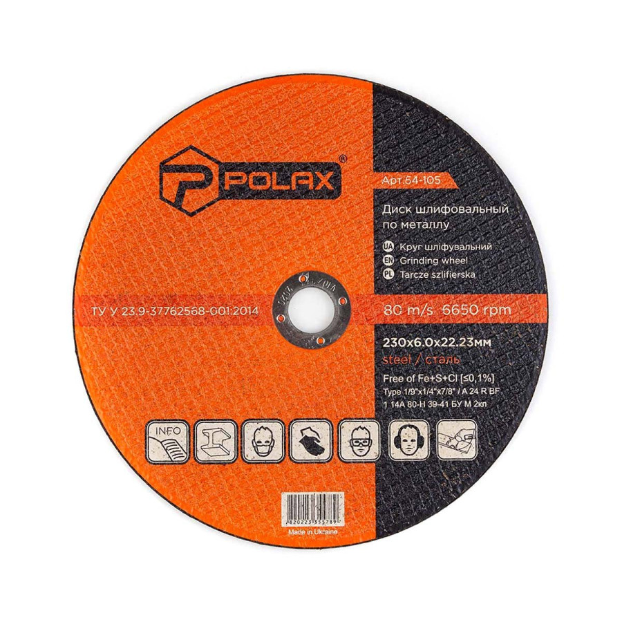 Диск Polax абразивний шліфувальний по металу 1 14А 230х6х22, 23 (54-105): надійний інструмент для якісної роботи