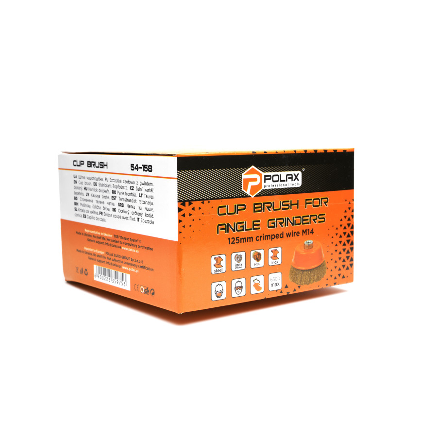 Щітка чашкова Polax 125 мм – це якісний аксесуар для кутових шліфувальних машин (УШМ), який стане незамінним інструментом як для професіоналів, так і для домашніх майстрів. Завдяки гофрованій латунованій проволокі, вона забезпечує ефективне очищення різноманітних поверхонь від іржі, фарби, бруду, нагару та інших забруднень. Обираючи продукцію бренду Polax, ви отримуєте оптимальне поєднання ціни, якості та довговічності.