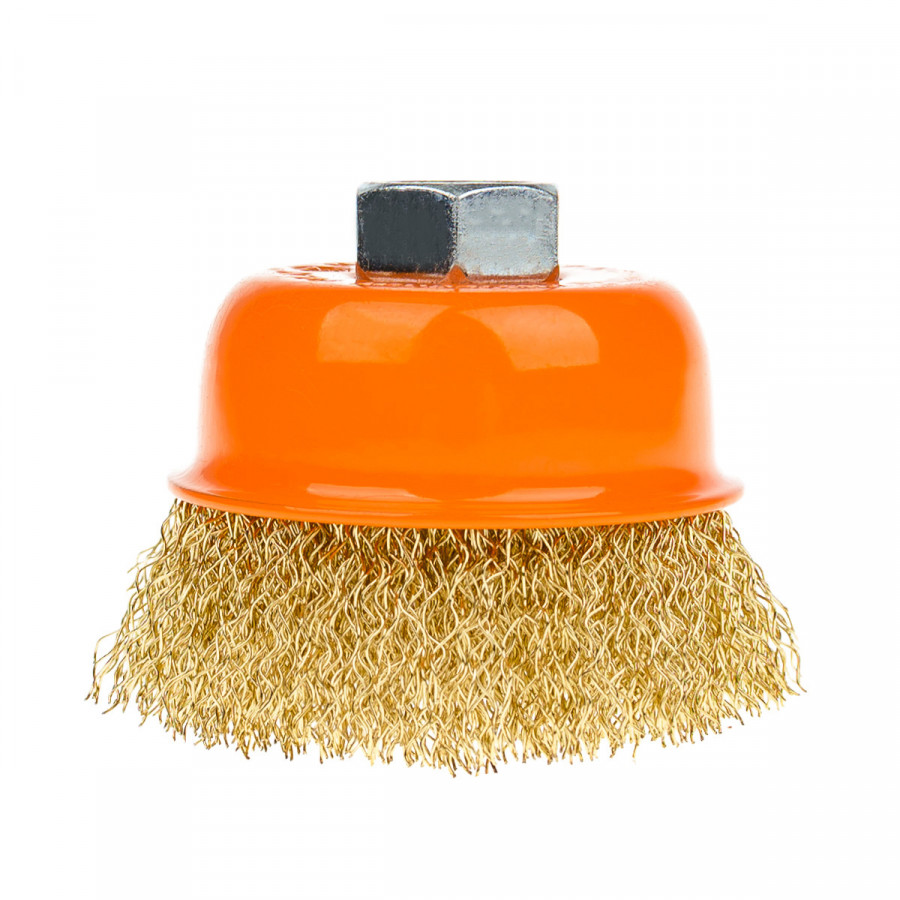 Щітка чашкова 65 мм, для УШМ, М14, гофр. пров., латунована Polax (54-175)