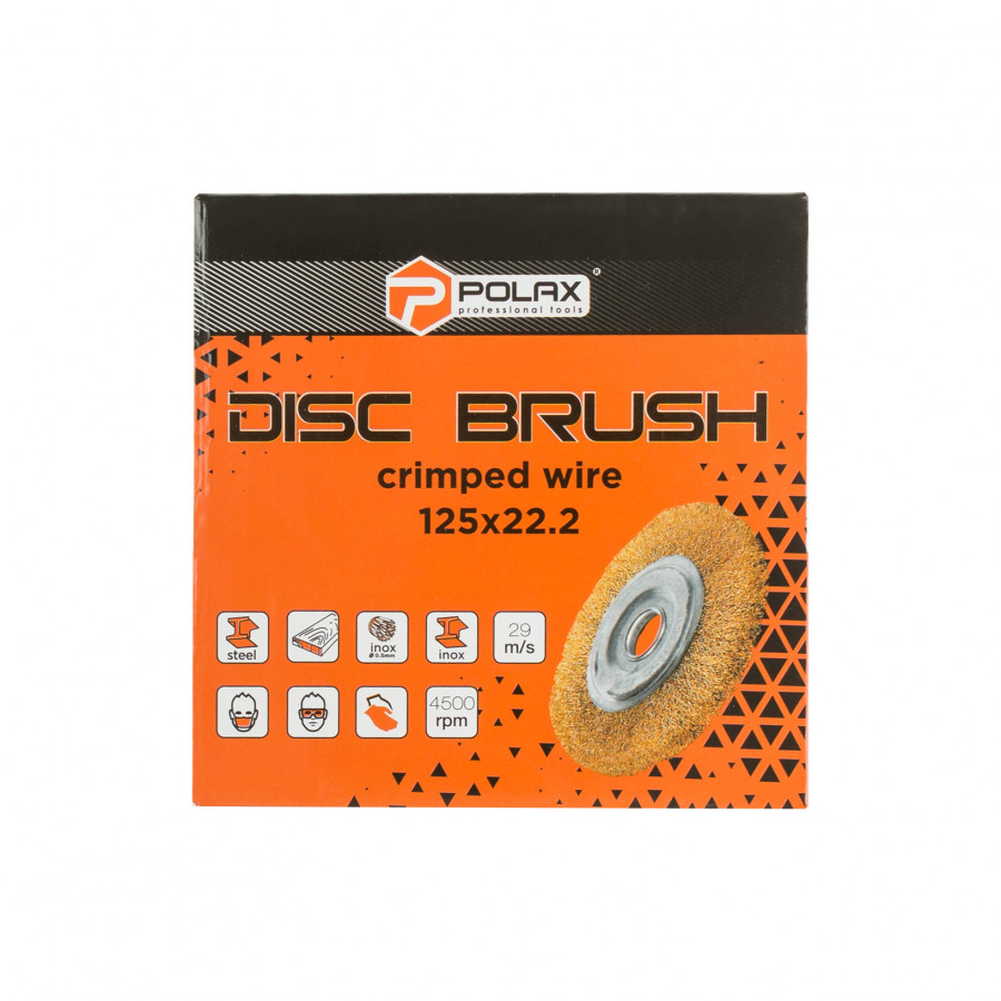 Щітка дискова 125 мм, для УШМ, М14, гофр. пров., латунована Polax (54-178)