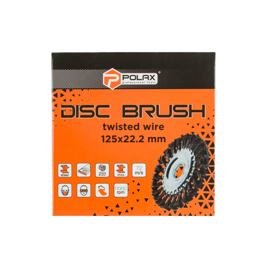 Щітка дискова Polax відрізняється надійністю та витривалістю, що робить її незамінною для підготовки поверхонь перед фарбуванням, зняттям іржі, старої фарби або лаку, а також для обробки зварних швів.