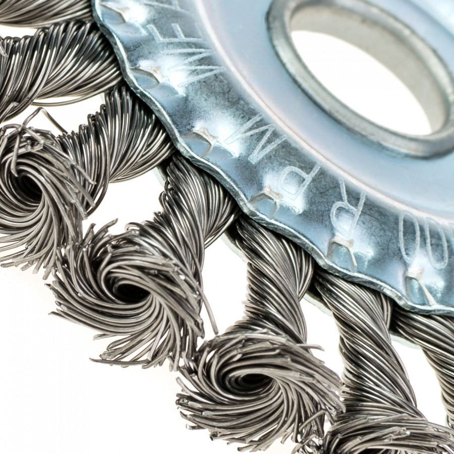 Щітка ідеально підходить для роботи з металом, зняття окалини, іржі, очищення зварних швів. Вона допоможе швидко впоратися з найскладнішими забрудненнями без пошкодження основної поверхні.