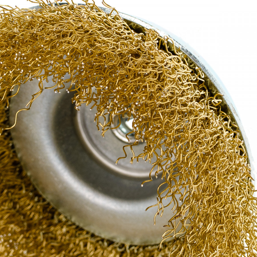 Щітка чашкова 100 мм, для дриля, 1/4", гофр. пров., латунована Polax (54-173)