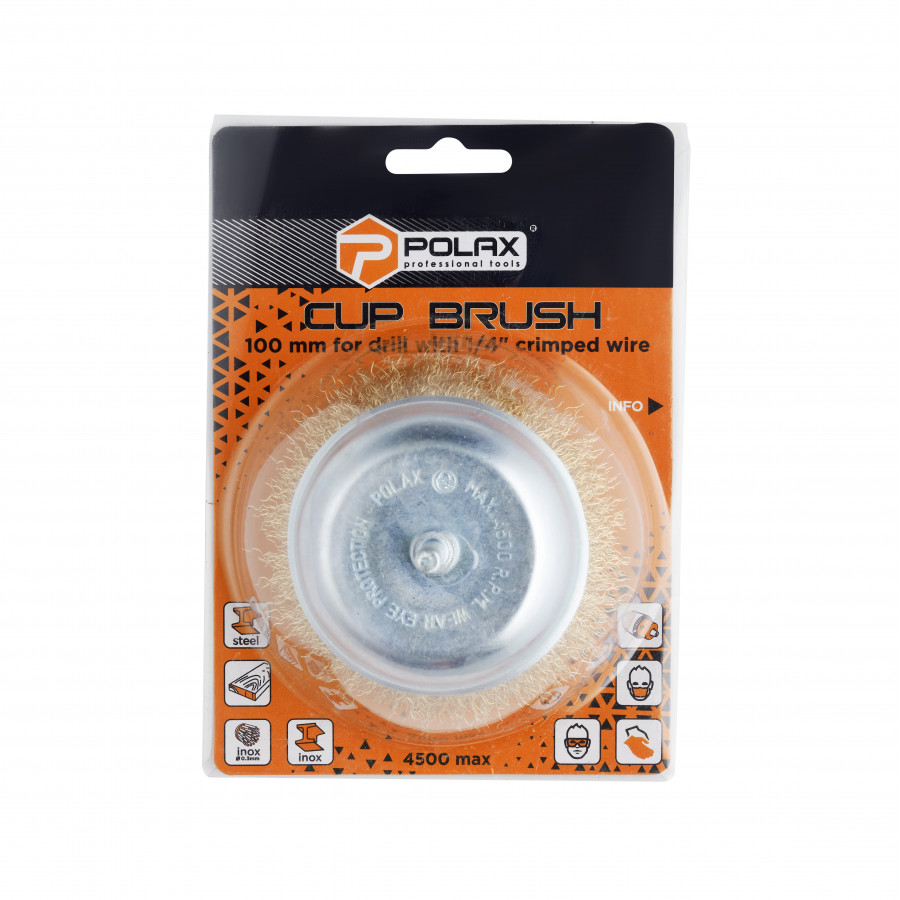 Щітка чашкова 100 мм для дриля Polax — надійний інструмент для роботи з металом