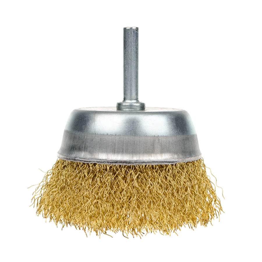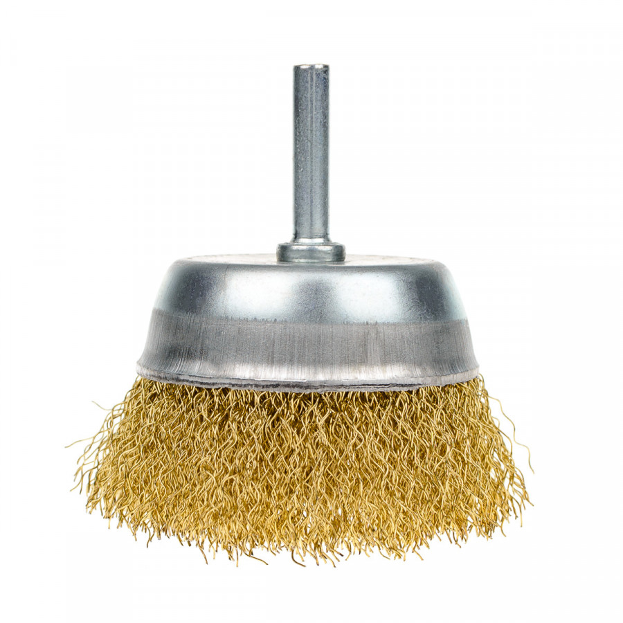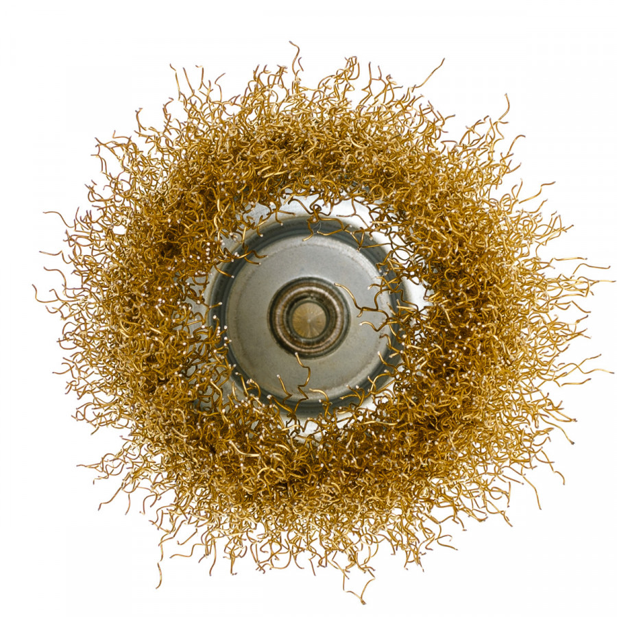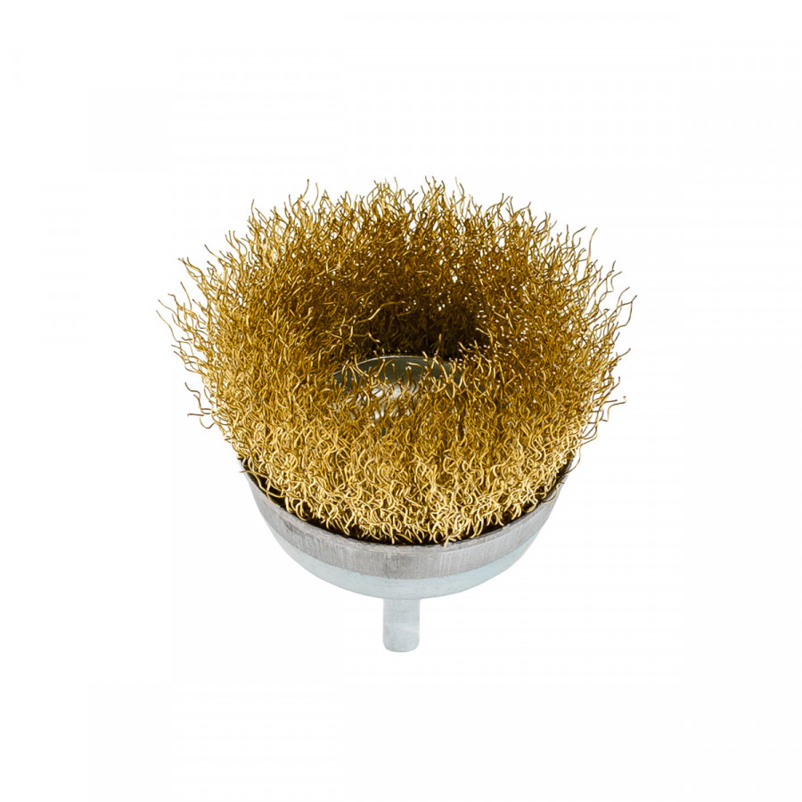 Щітка чашкова 75 мм, для дриля, 1/4", гофр. пров., латунована Polax (54-172)