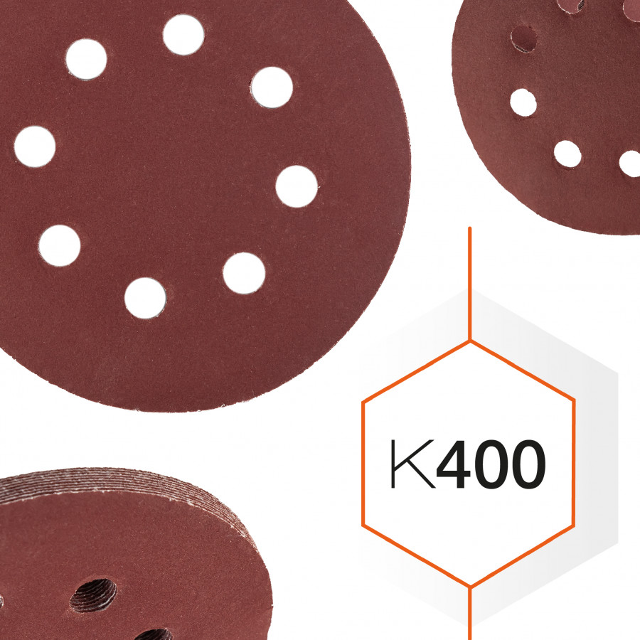 - Зернистість К400 – ідеальна для фінішного шліфування, дозволяє досягти гладкої поверхні без подряпин.