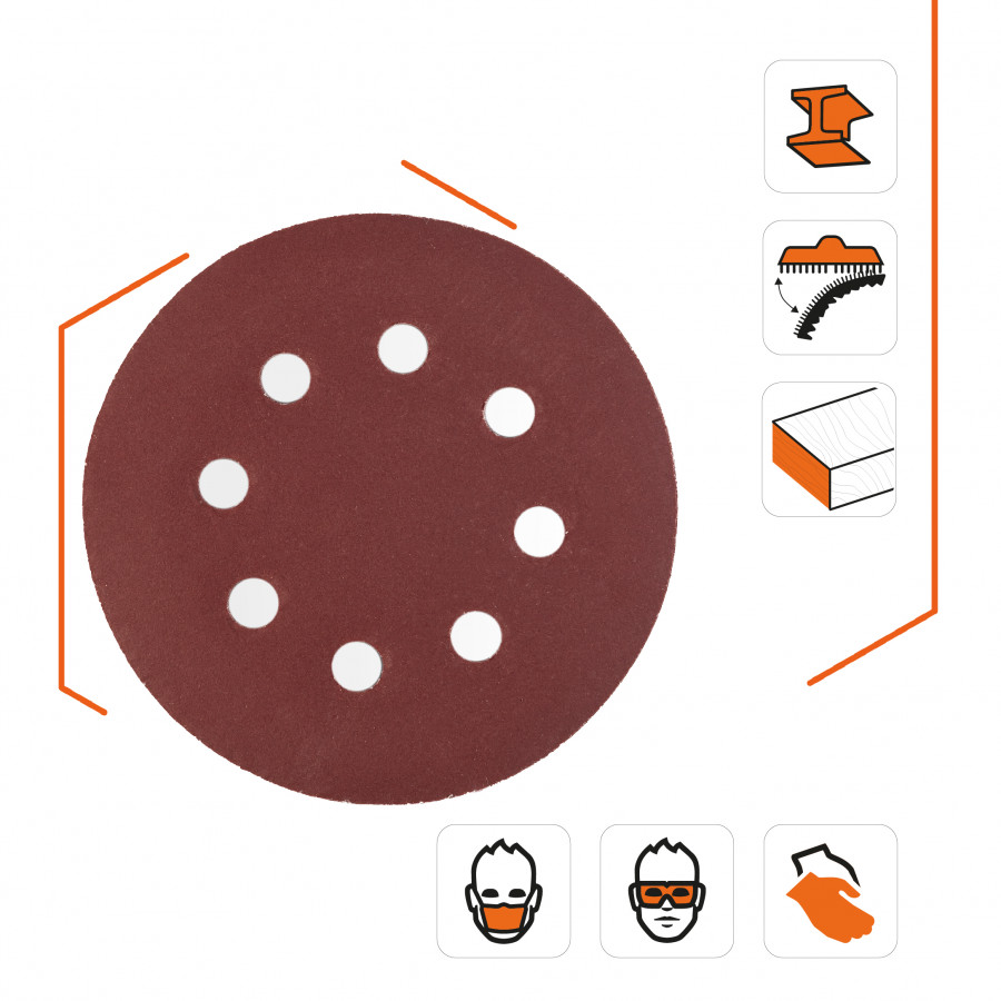 - Діаметр 125 мм – оптимальний розмір для роботи з різними шліфувальними машинами та для обробки як великих, так і невеликих поверхонь.