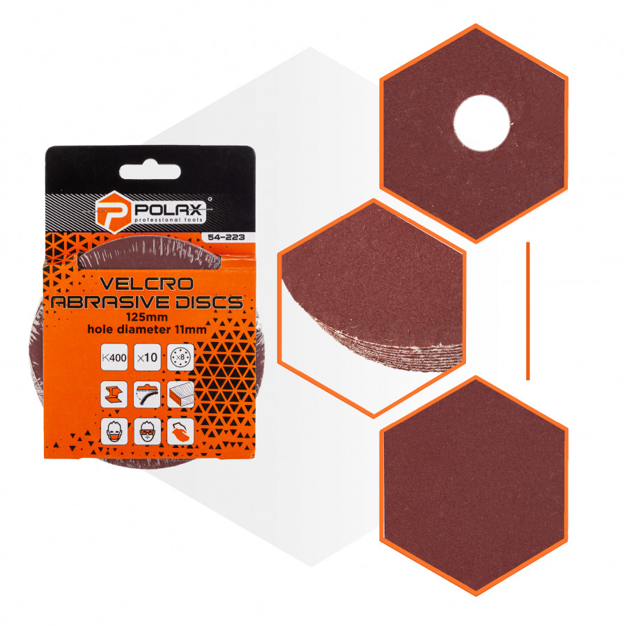 Шліфувальний круг Polax з липучкою (самозачіпною основою) діаметром 125 мм та зернистістю К400 призначений для фінішного шліфування різних поверхонь: металу, дерева, пластику, лакофарбових покриттів. Завдяки перфорації (отворам), під час процесу шліфування значно знижується кількість пилу, що покращує огляд робочої зони та захищає здоров’я майстра. Самозачіпна основа дозволяє легко та швидко замінювати круги під час роботи, що особливо актуально при виконанні великих обсягів робіт або при необхідності частої зміни зернистості.