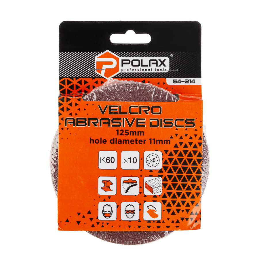 Шліфувальний круг Polax на липучці самозачіпній 125 мм, К60, з отворами (54-214) – надійний вибір для професіоналів і аматорів