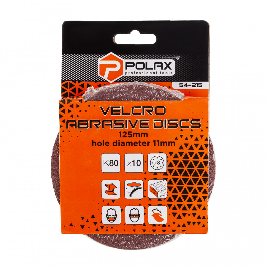 Опис шліфувального круга Polax на липучці самозачіпній 125 мм, К80, з отворами (54-215)